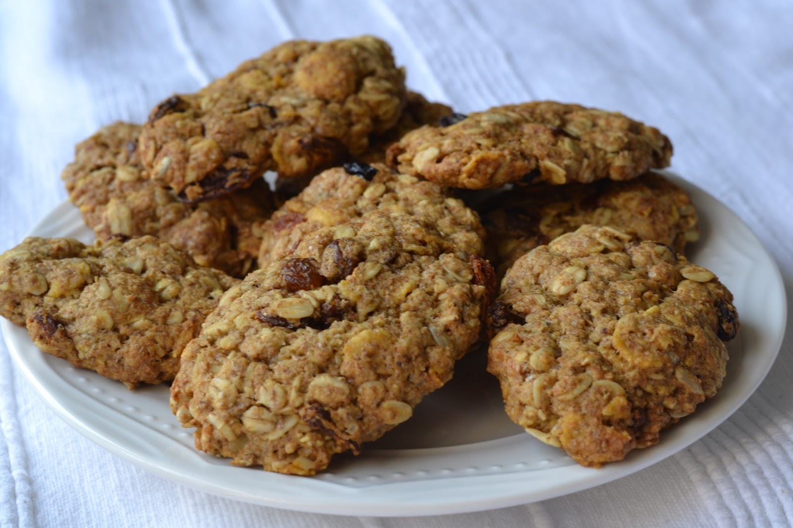 Intr-un bol punem toate ingredientele uscate (faina, fulgii de cereale, zaharul, zaharul vaniliat, praful de copt si stafidele.